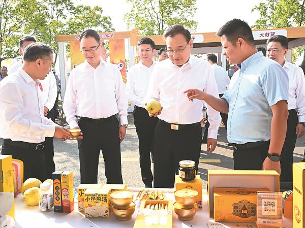 9月23日上午,2025年中国农民丰收节安徽主场活动在铜陵市义安区西联镇犁桥村隆重举行。本报记者 杨竹 许昊 摄 9月23日上午,省委书记梁言顺,省委副书记、省长王清宪等在2025年中国农民丰收节安徽主场活动巡展环节中边走边看,与参展农民群众和企业家深入交流。本报记者 杨竹 许昊 摄 秋景美如画,最美是丰收。9月23日上午,2025年中国农民丰收节安徽主场活动在铜陵市义安区西联镇犁桥村隆重举行。省委书记梁言顺,省委副书记、省长王清宪,省委常委、秘书长单向前出席。 2025年中国农民丰收节以“庆农业丰收 享美好生活”为主题,安徽主场活动分为巡展、启动仪式、群众联欢等环节。绿色食品、智能农机、乡村美食、非遗创意产品等展区全面展示了安徽“三农”工作取得的丰硕成果,梁言顺、王清宪等边走边看,与参展农民群众和企业家深入交流。梁言顺指出,习近平总书记连续八年向全国广大农民和“三农”战线同志致以节日祝贺和诚挚问候,充分体现了对“三农”工作的高度重视和对农民群众的亲切关怀。安徽作为农业大省,要深入贯彻习近平总书记关于“三农”工作的重要论述和考察安徽重要讲话精神,坚定扛起“三农”工作时代重任,坚持农业农村优先发展,完善强农惠农富农政策,高水平建设江淮粮仓,持续巩固脱贫攻坚成果,加快农业农村现代化步伐,推进乡村全面振兴,不断开创安徽“三农”工作新局面。 9时20分许,在欢快的音乐声中,5位农民代表和人形机器人共同开启联欢活动序幕。随后,黄梅歌《山野的风》《上春山》、情景歌舞《六尺巷》等精彩节目相继上演,全面展现了安徽农业丰产丰收、农村安定祥和、农民幸福安康的美好画卷,梁言顺、王清宪等与农民群众共同观看。现场还颁发了安徽农业科技推广奖、铜陵白姜“姜王”奖。 在铜期间,梁言顺、王清宪来到犁桥水镇观看村BA、非遗技艺和青铜版画文创展示。主场活动结束后,梁言顺来到永泉小镇调研农耕文化活化利用、农文旅融合发展等情况。他强调,要用好特色资源,扎实推动一二三产融合发展,因地制宜发展乡村旅游、休闲农业等新业态,打造更多农文旅精品项目,努力实现农业增效益、农民增收入、农村增活力,让老百姓的日子越过越红火。(宗禾 李浩)