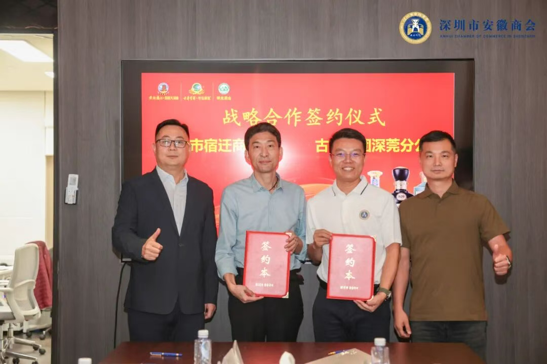11月1日,深圳市江苏宿迁商会会长陈峙安率队走访深圳市安徽商会,并与古井集团深莞分公司签订战略合作协议。此次活动不仅加深了两地商会间的友谊,更为双方未来的合作发展奠定了坚实基础。