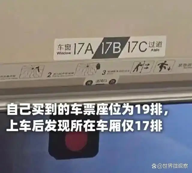 如今,高铁已然成为人们优选的出行方式,这主要是高铁的快捷、舒适与安全,广受公众认可。可是,有位网友近日却在乘坐高铁时遭遇了离奇一幕。自己购买的车票上,座位号明明显示的是第19排,上车后却遍寻不着,因为这个单节车厢居然只有17排。于是乎,他不得不发文吐槽:“高铁座位不翼而飞?我也是活久见了,高铁买票的时候没看见,买的19B,结果车厢只有17排。我座位呢?”