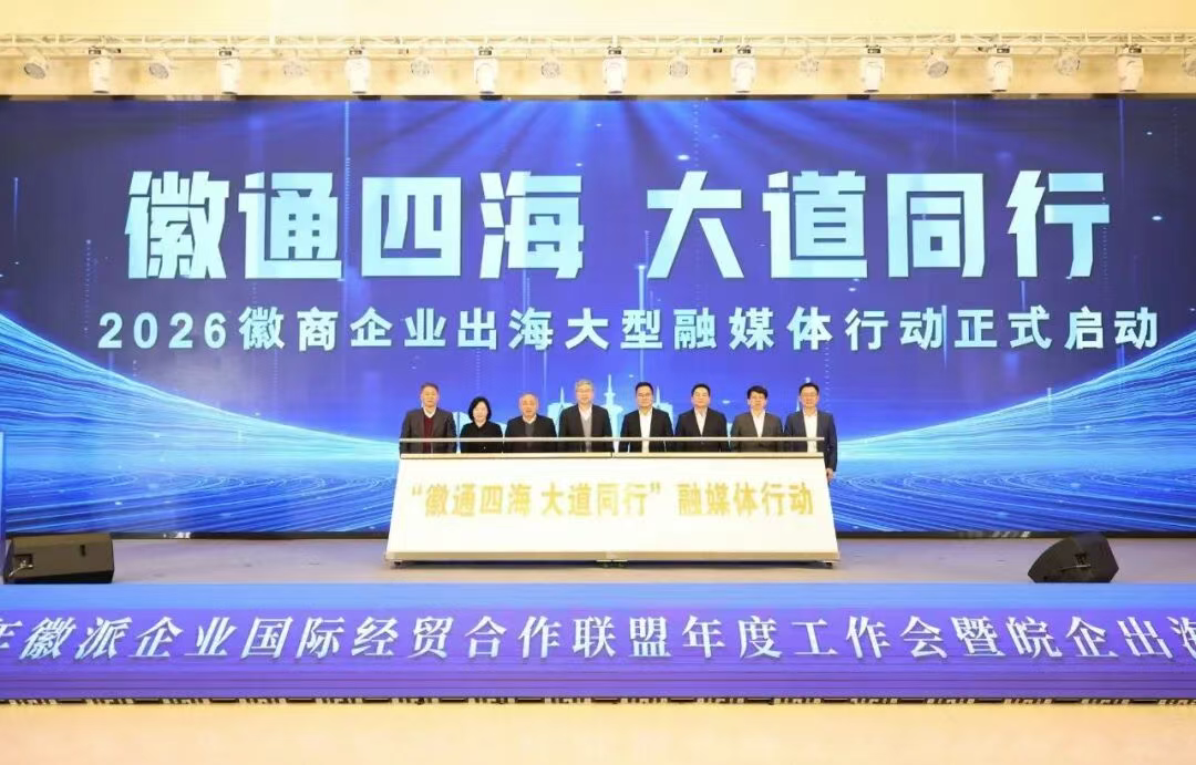 现场,《徽通四海 大道同行》——2026徽商企业出海大型融媒体行动启动仪式举办,旨在擦亮安徽品牌,传播安徽声音,全面展现徽派企业出海的卓越成就、强劲动能。