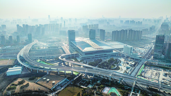 12月30日,合肥西站正式投入运营。汇聚8台18线,日客流量将达到10万人次以上的合肥西站,是高质量建设的新一代高铁枢纽标杆性作品。至此,合肥西站与合肥站、合肥南站“三足鼎立”的铁路枢纽格局正式形成。图为12月29日拍摄的合肥西站。
