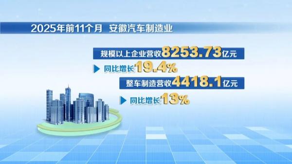 过去5年,安徽汽车及新能源汽车产量一步一个台阶,2025年成功在全国登顶;去年,安徽汽车制造业规模以上工业增加值同比增长20.1%,对全部工业增长的贡献率超过两成;2025年前11个月,全省汽车制造业规模以上企业实现营收8253.73亿元、同比增长19.4%,其中整车制造实现营收4418.1亿元、同比增长13%。