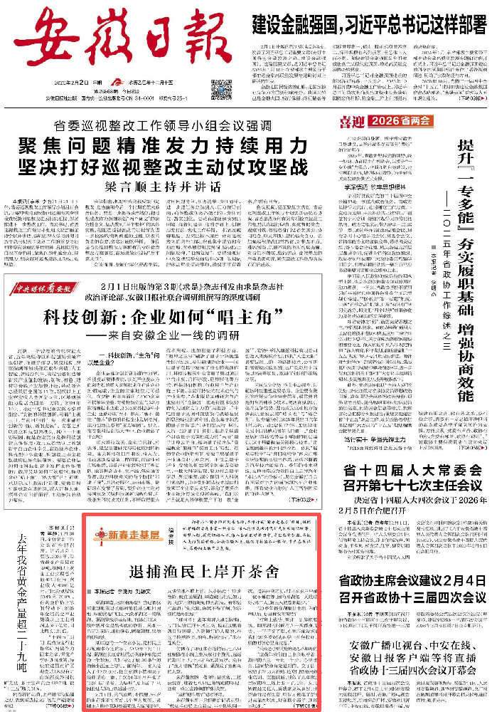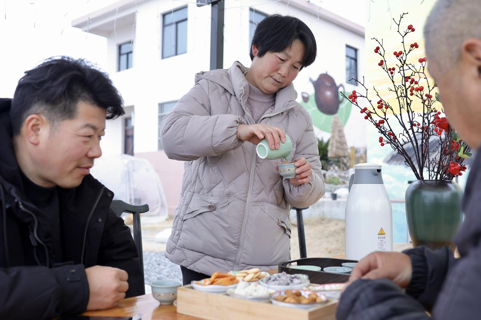 湖岸边的一个农家小院,是村民王思勤和朱存莲的家。2020年1月1日起,巢湖在长江流域重点湖泊中率先实施十年禁渔。夫妇俩交了船,20余年的捕鱼生涯画上句号。前两年,一家人投入了40余万元,把自家的小楼和院子装修整治一番,于2024年9月开张了“见山居”茶舍。为啥叫“见山居”?只因此处与姥山岛遥遥相望。