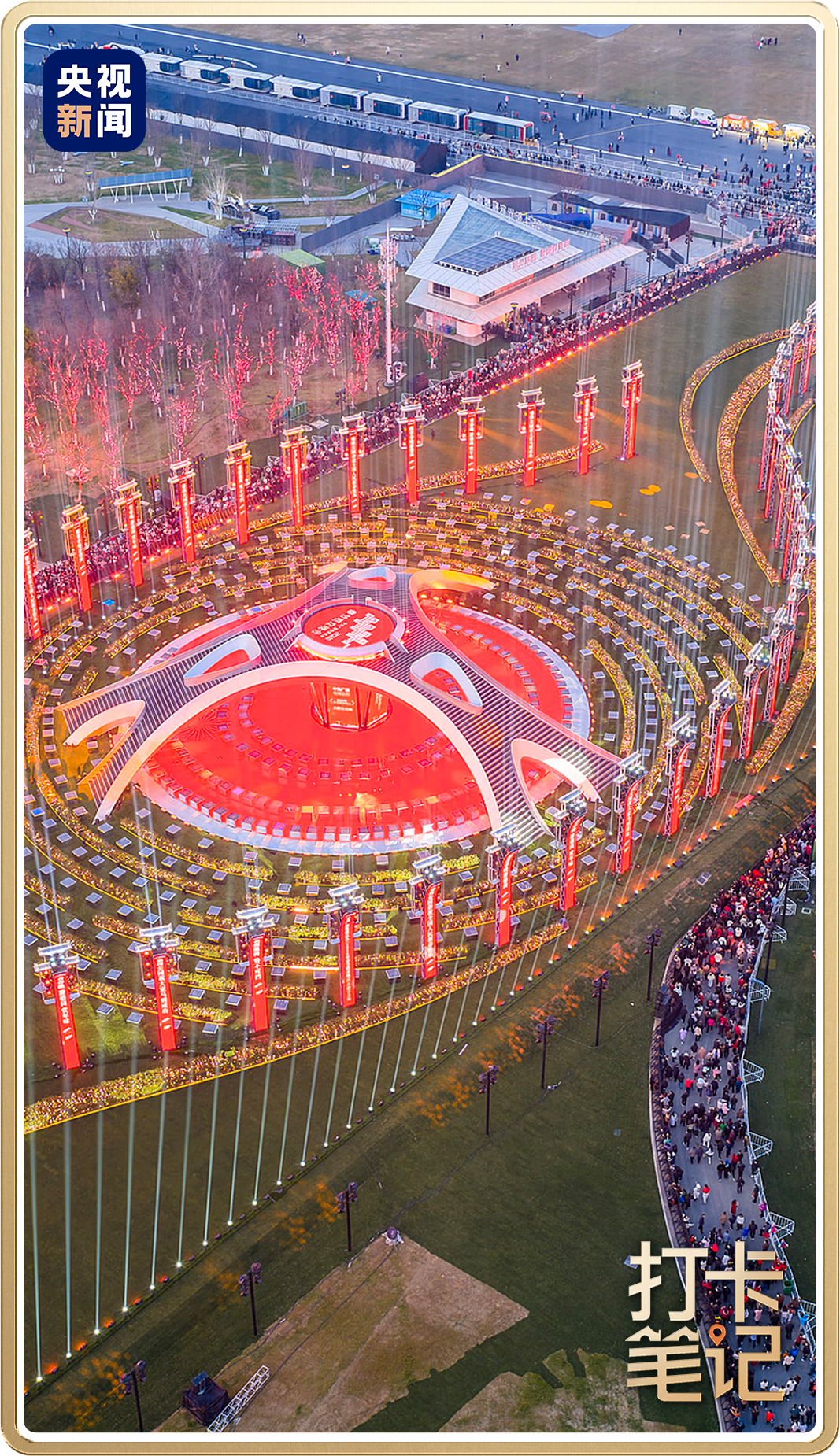 春节假期期间,每天18时到22时,主舞台都会上演春晚同款灯光秀。此外,为了让春晚的热度给当地文旅带来增量,骆岗公园内设置了多个结合了春晚元素和马年元素的打卡点。
