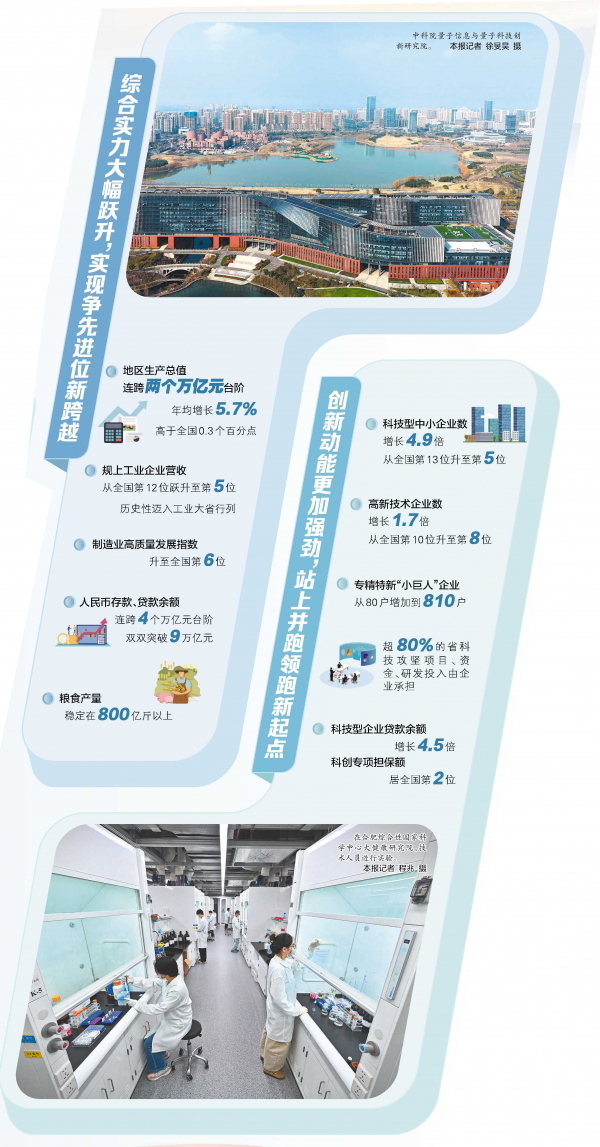五年跨越,安徽蝶变。站在“十五五”新起点,安徽正以更加自信昂扬的姿态,锚定“三地一区”实现新突破和取得“三个新的更大进展”目标,在中国式现代化的宏伟画卷中,绘就更加精彩的“皖”美篇章。