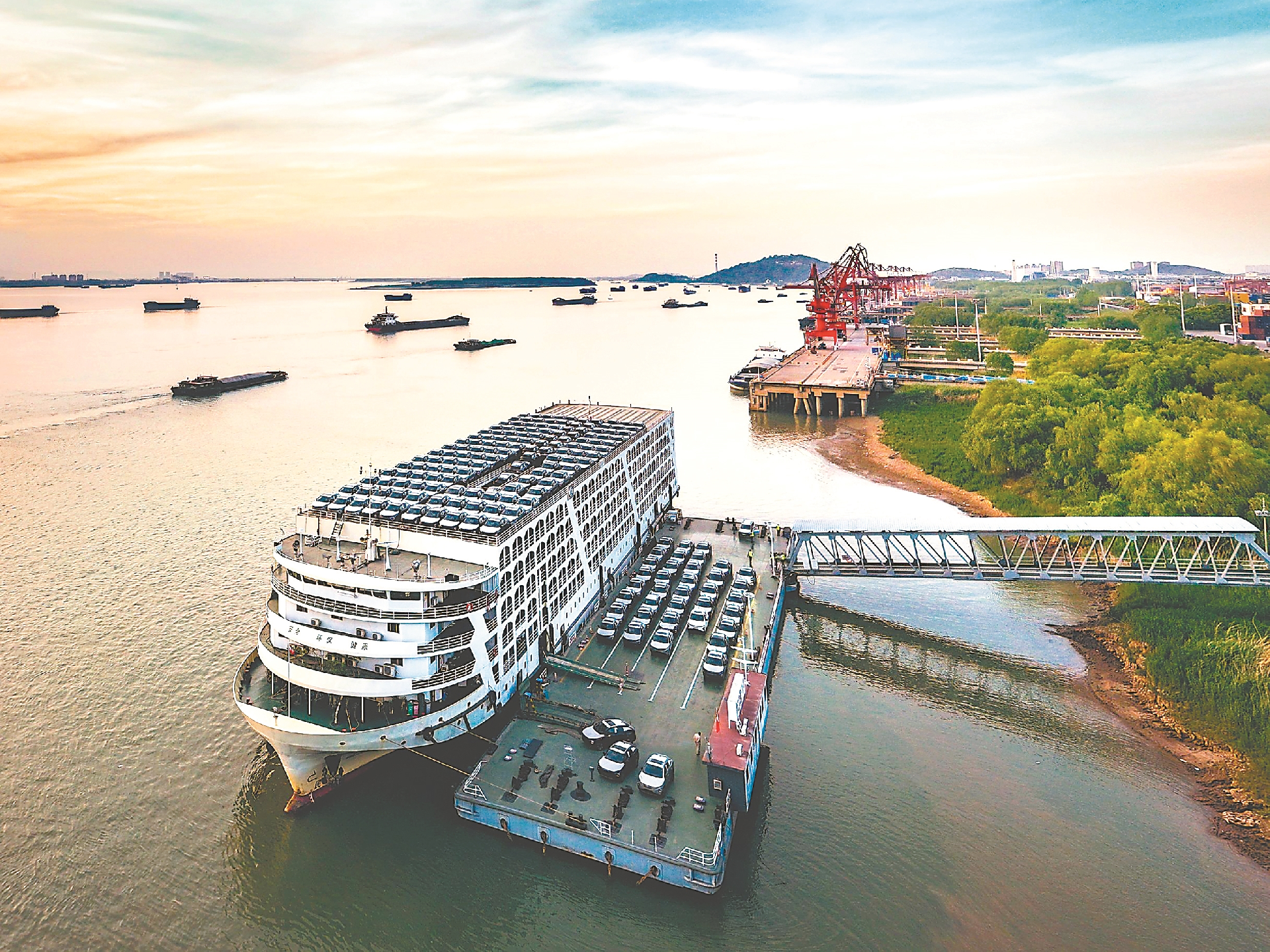 “水路运输是奇瑞汽车最主要的出口量运输形式,我们80%的新能源汽车通过芜湖港出口。”奇瑞汽车股份有限公司国际公司资源管理部总监李杰斌说,以前汽车出口海外,要先通过公路运输到上海洋山港,然后再换船出海。
