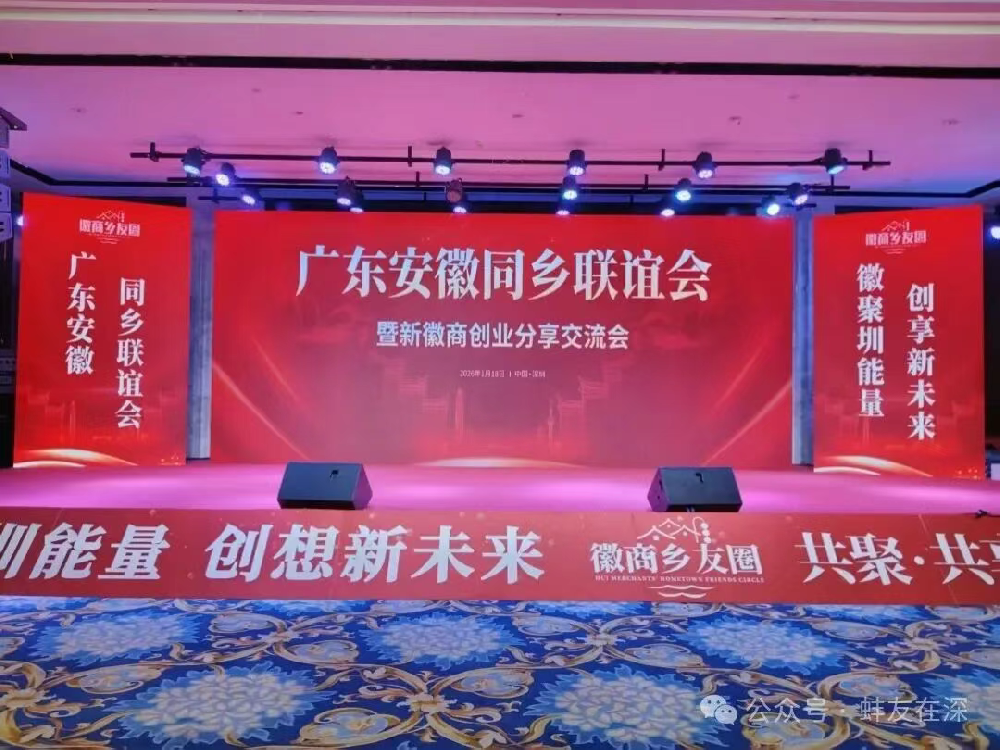 1月18日,广东安徽人同乡联谊会暨新徽商创业分享交流会在深圳市成功举办。近400位在粤安徽乡友欢聚一堂,共叙桑梓情谊,共探创业新机,以实际行动传承徽商精神,搭建资源共享平台。