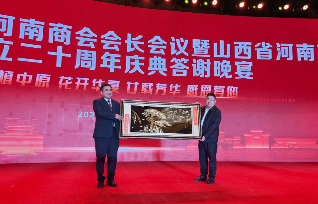 会议期间,安徽省河南商会代表还受邀参加了“知名商企三晋行 聚智汇能促转型”豫商助力山西高质量发展大会、山西省河南商会成立20周年庆典,并赠送黄山松铁画。