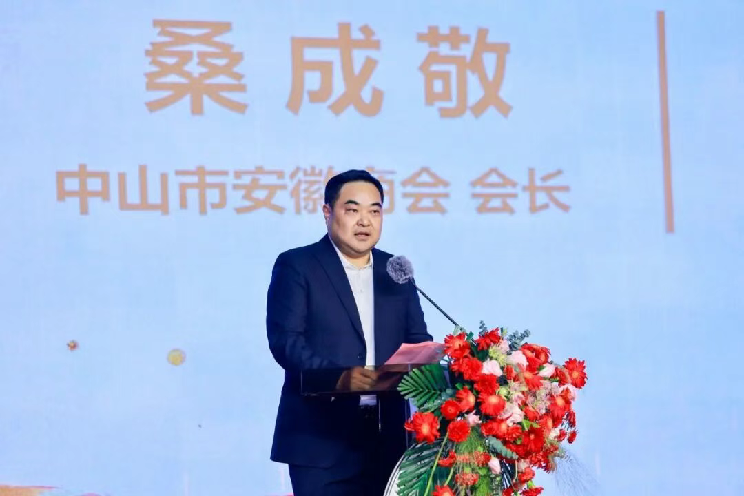 桑成敬在致辞中表示,十五年风雨兼程,十五载砥砺前行。2010年,中山市安徽商会成立,从初创时的携手同行,到如今拥有230多家会员企业、覆盖建筑、石化、红木家具、照明电子等多个领域的蓬勃景象,商会的每一步成长,都离不开各位乡贤的凝心聚力,离不开粤皖两地政府的关怀支持,更离不开社会各界朋友的鼎力相助。十五年来,我们坚守“服务会员、服务政府、服务社会”的宗旨,以“弘扬徽商文化,传承徽商精神”为己任,先后斩获“全国四好商会”“5A级社会组织”等多项殊荣,从军民共建到党建示范,从抗疫担当到慈善捐赠,从未来,中山徽商大厦的建成,我们用实干与担当,让现代徽商的旗帜在湾区大地高高飘扬。