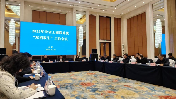 12月11日,会议围绕“双招双引”提质增效开展深度交流研讨。会上,省工商联“双招双引”领导小组办公室通报全省工作推进态势,明确下一阶段重点任务方向;安徽国有金融资本投资管理有限公司、合肥桉树资本管理有限公司、科大硅谷等单位,分享基金赋能产业发展、科创企业培育孵化的实战经验;省部分新兴产业推进组、省发改委、省科技情报研究所立足自身职能定位,围绕产业招引策略优化、产业布局规划构想及高质量发展路径探索,提供专业指导意见。 安徽省工商联二级巡视员葛文胜出席会议并讲话。他首先向各参会单位的鼎力支持致以诚挚谢意,随后全面回顾并系统总结全省工商联系统“双招双引”工作取得的阶段性成果,并对下一阶段工作作出具体部署。葛文胜强调,全省工商联系统需进一步凝聚工作合力,聚焦招引质量与效能提升,推动“双招双引”工作迈上新台阶。