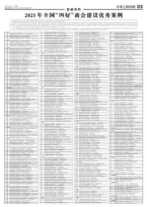 据了解,今年全国工商联印发《全国工商联“四好”商会建设实施办法(试行)》,进一步完善建设标准,推动示范引领与日常建设深度衔接,探索“四好”商会建设新模式。各地工商联高度重视、精心组织,将“四好”商会建设纳入重点工作,通过重引领、优服务、强组织、促规范,培育出一批具有示范带动作用的先进商会。经省级工商联推荐、全国工商联直属商会申报等严格程序,最终确定500家全国“四好”商会优秀建设案例,并在《中华工商时报》予以正式刊发。