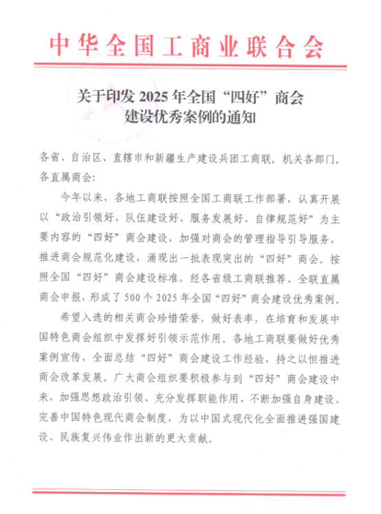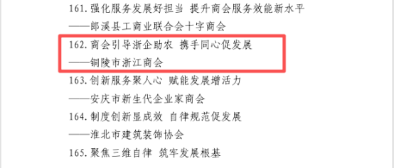 12月22日,全国工商联公布2025年“四好”商会建设优秀案例名单,铜陵市浙江商会《商会引导浙企助农 携手同心促发展》荣获2025年全国“四好”商会建设优秀案例。