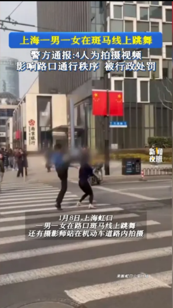 近日出现在上海街头的一个画面,着实让笔者吓了一身冷汗:一男一女全然不顾通行秩序与个人安危,竟在斑马线上炫起了舞技。那种忘我的表情、陶醉的神态,无外乎就是为了博眼球、赚流量而已。