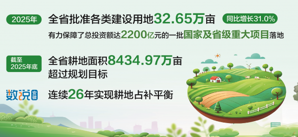 土地要素配置质效大幅提升。2025年,全省批准各类建设用地32.65万亩,同比增长31.0%,有力保障了总投资额达2200亿元的一批国家及省级重大项目落地。供应国有建设用地33.26万亩,出让合同价款1219.49亿元。全省土地供应总量位居全国第八、长三角地区第三、中部地区第二。