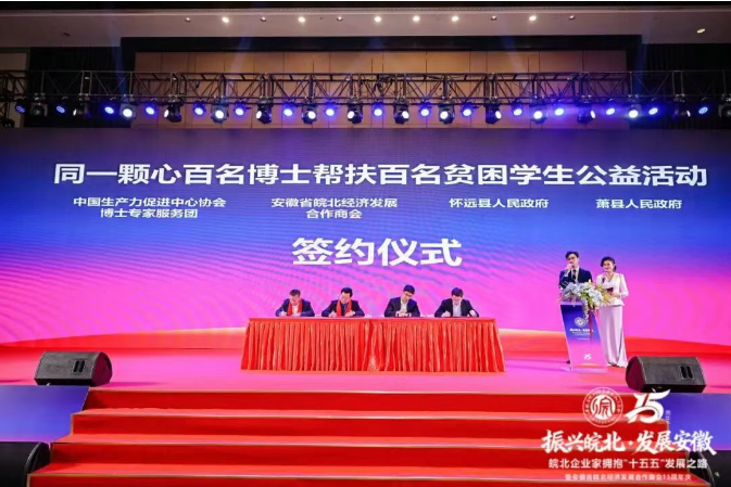 公益实践与文化传承环节同样亮点突出。“同一颗心——百名博士帮扶百名贫困学生”公益活动签约仪式圆满举行,中国生产力促进中心协会博士专家服务团,分别与安徽省皖北经济发展合作商会、怀远县人民政府、萧县人民政府签署合作协议。这一举措充分体现了商会与企业家群体对教育事业的热忱与对青少年成长的关爱,彰显了强烈的社会责任担当,也为乡村振兴人才培养注入了持续动力。