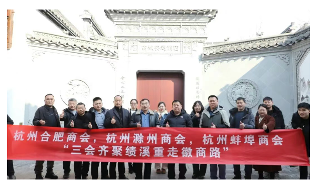 2月8日,杭州市合肥商会联合杭州市滁州商会、杭州市蚌埠商会,组织三商会同仁齐聚徽商故里绩溪,共同开展 “三会齐聚绩溪重走徽商路” 主题活动。杭州市合肥商会会长程健、杭州市滁州商会执行会长朱广尧、杭州市蚌埠商会秘书长姜涛等共同参加。