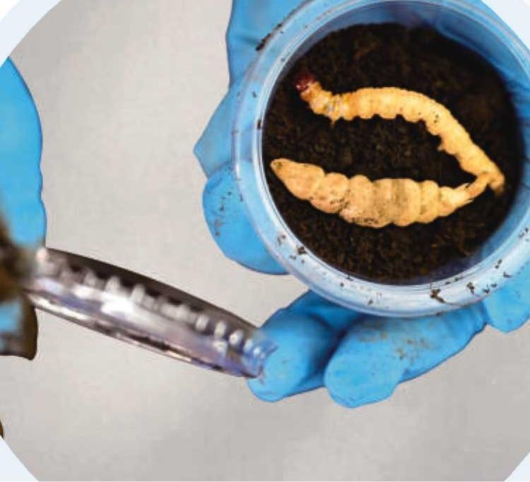 工作人员将冬虫夏草和它的食物放进培养皿。记者 徐旻昊 摄