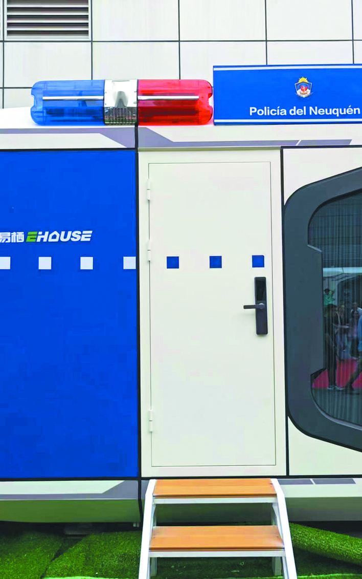 “这台蓝白配色的太空舱,其实是一台出口到阿根廷的警务站,上面还印着他们的警徽标识。”于佳林透露,公司旗下的太空舱产品已出口全球160多个国家,“我们太空舱采用与汽车生产线相似的标准化生产与模块化设计,主体框架采用高强度耐候钢,用造汽车的方式造太空舱。这种生产技术的提升,也让我们对产品质量格外有信心,敢于承诺50年的框架质保。”