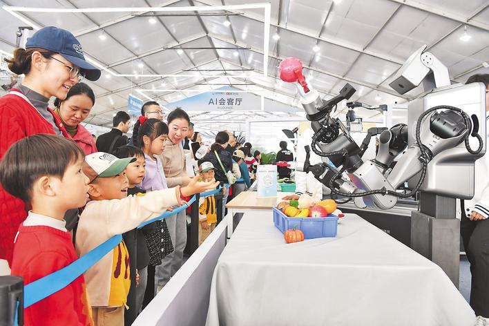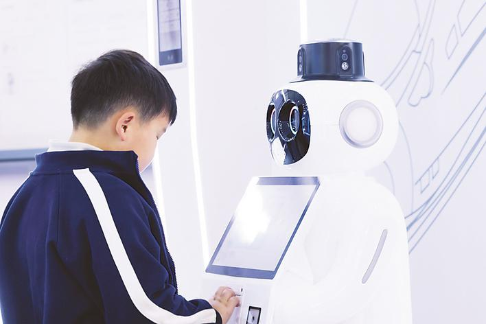 小朋友正在体验服务机器人带来的便利。 记者 李亚朝 摄