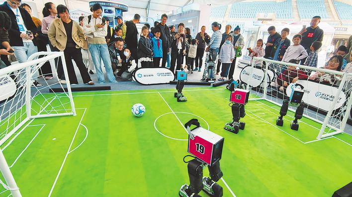 市民围观别开生面的机器人足球赛。 记者 李亚朝 摄