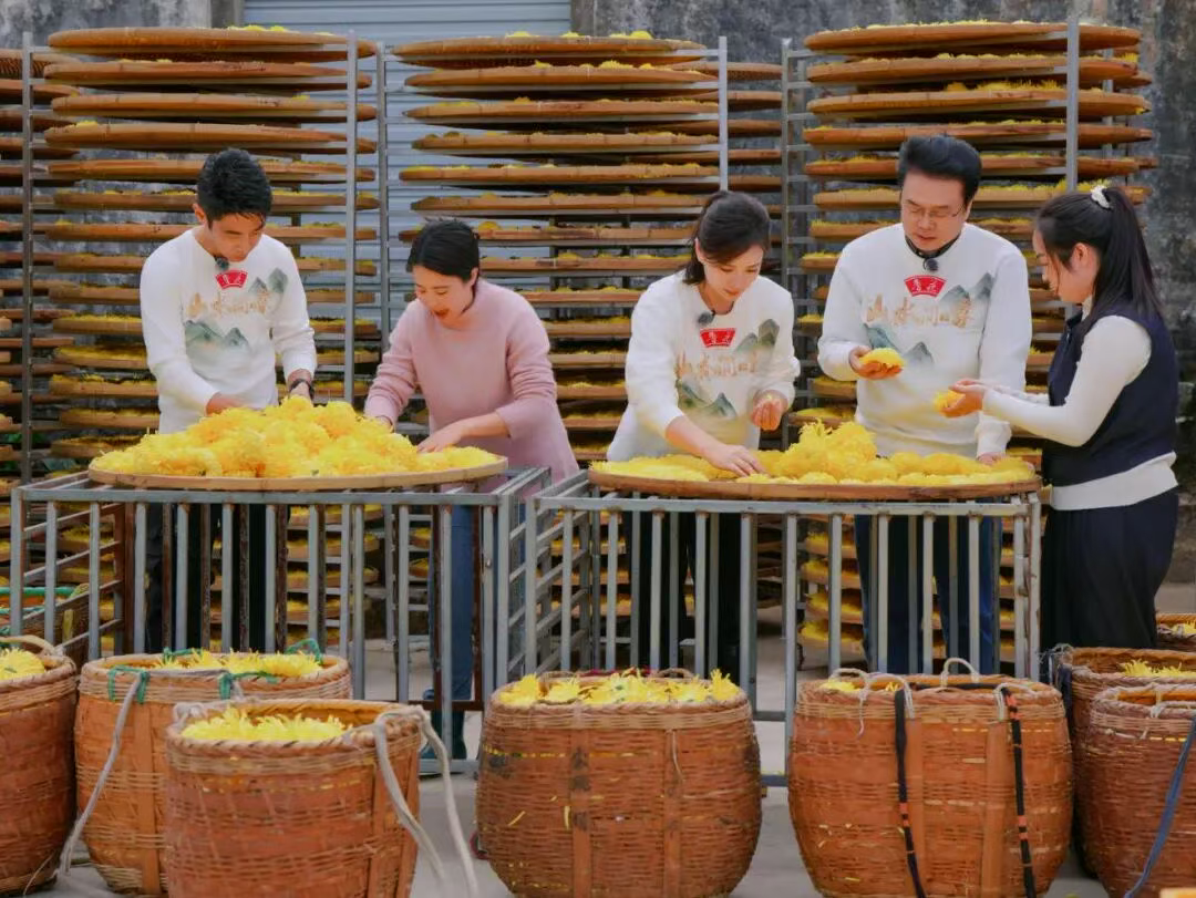 节目以“一户农家、两大产业、一场家宴”为主线,聚焦上丰村特色农业产业发展成果。嘉宾们在村民带领下,走进金丝皇菊种植地与柿子林,亲手参与采摘劳作,详细了解特色农作物的种植技术、深加工产品以及农文旅产业链延伸的创新做法。拍摄中,嘉宾们还受邀走进村民家中,共同烹制地道农村家宴,围桌共话小家故事与乡村变迁,沉浸式感受乡村生活的烟火温度与振兴活力。