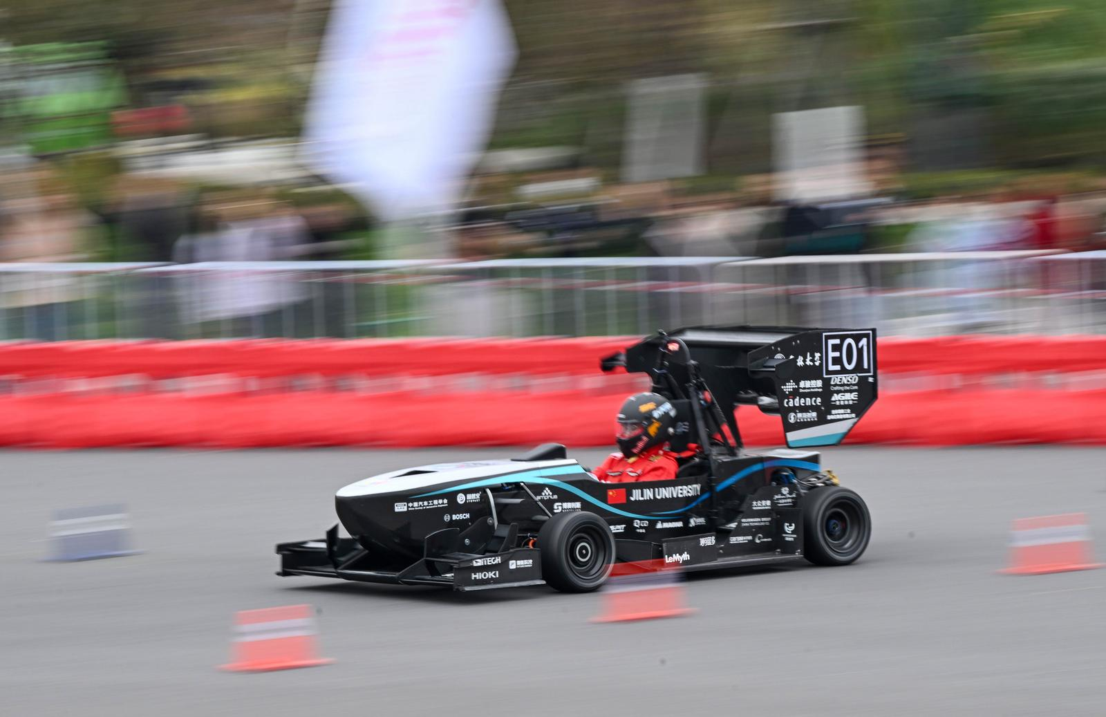 11月23日,车手正在位于骆岗公园的2025中国大学生方程式系列赛上上演速度与激情。