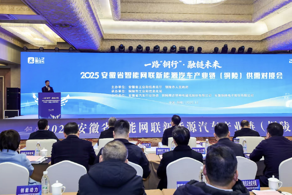 12月16日至17日,以“一路‘铜’行•融链未来”为主题的2025安徽省智能网联新能源汽车产业链供需对接会在铜陵市成功举行。会上,有关地方政府与汽车产业投资商签订了总投资30.3亿元的项目落地协议,依次进行了产业链合作、人才链合作、创新链合作、金融链合作签约,签约总金额5.54亿元。