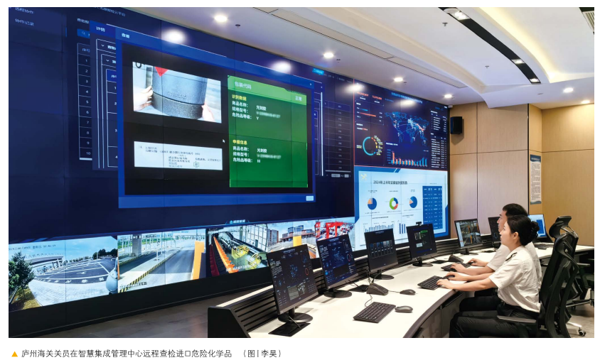 光刻胶的保质期通常只有半年,存放不仅消耗保质期,还需要冷藏货柜,租用一天需要上千元。为了解决这种关键原材料保质期短、周转周期长的痛点,合肥在全国率先开展了“战新产业进口危化品检验智慧海关应用场景”建设,让原料先进企业仓库,使用“AR+AI”技术实时识别,再经过大数据后台智能分析、远程验放,大大降低了企业成本。