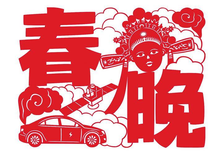 这次亮相的两幅作品,一幅以“灿烂”为主题,回应新年语境中的文化表达;另一幅则围绕“春晚”展开。“春晚”两个字并未被简单剪出,而是被当作画面的结构框架,在字形内部嵌入多个合肥元素:黄梅戏《女驸马》的形象、量子科技的象征符号、新能源汽车的轮廓线条,被有意识地安排在不同区域。