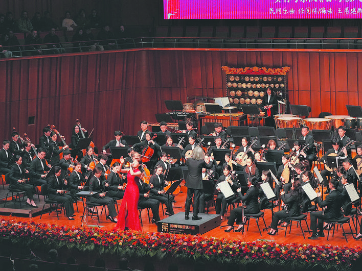 2月7日晚,合肥大剧院内丝竹悠扬、管弦和鸣,第十二季合肥市文化惠民演出活动——2026《丝竹交响》新春音乐会在此精彩上演。
