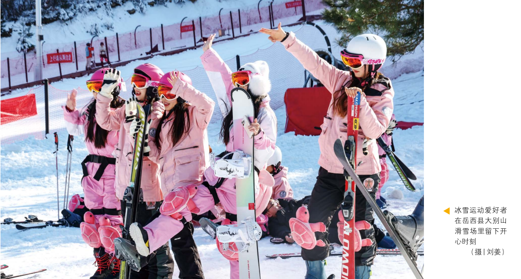 “游客滑完雪收板,还可以登明堂山、打卡彩虹瀑布等景点。大约开车20分钟就可以泡一池温泉驱走寒气,最后围炉煮茶、吃着岳西当地特色土菜暖到心底。”岳西县大别山滑雪场总经理吴俊歌笑着对记者说。