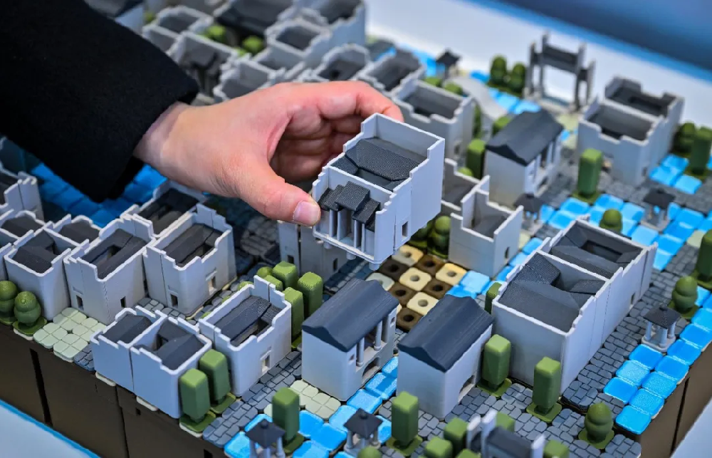 3月26日,位于合肥骆岗公园的“皖好房”科技展,市民在参观装配式钢结构建筑智能工厂演示模型。