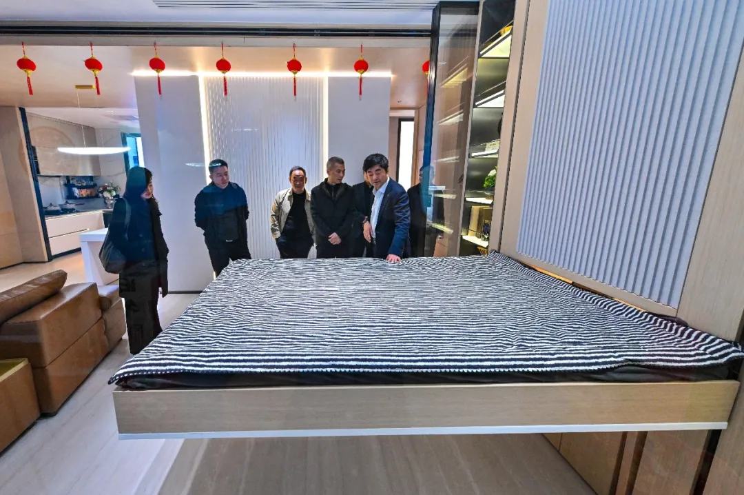 张女士参观的这间保障房样板间融合了徽派意象与现代科技,全屋搭载智慧系统,依托环境感知与自主调节实现主动化、场景化的未来生活体验,并通过绿色建造和数字化技术,持续营造健康、节能的居住环境。