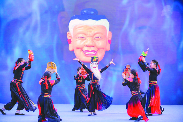 祁门县职业技术学校学生演绎《祁门·傩韵千年》。
