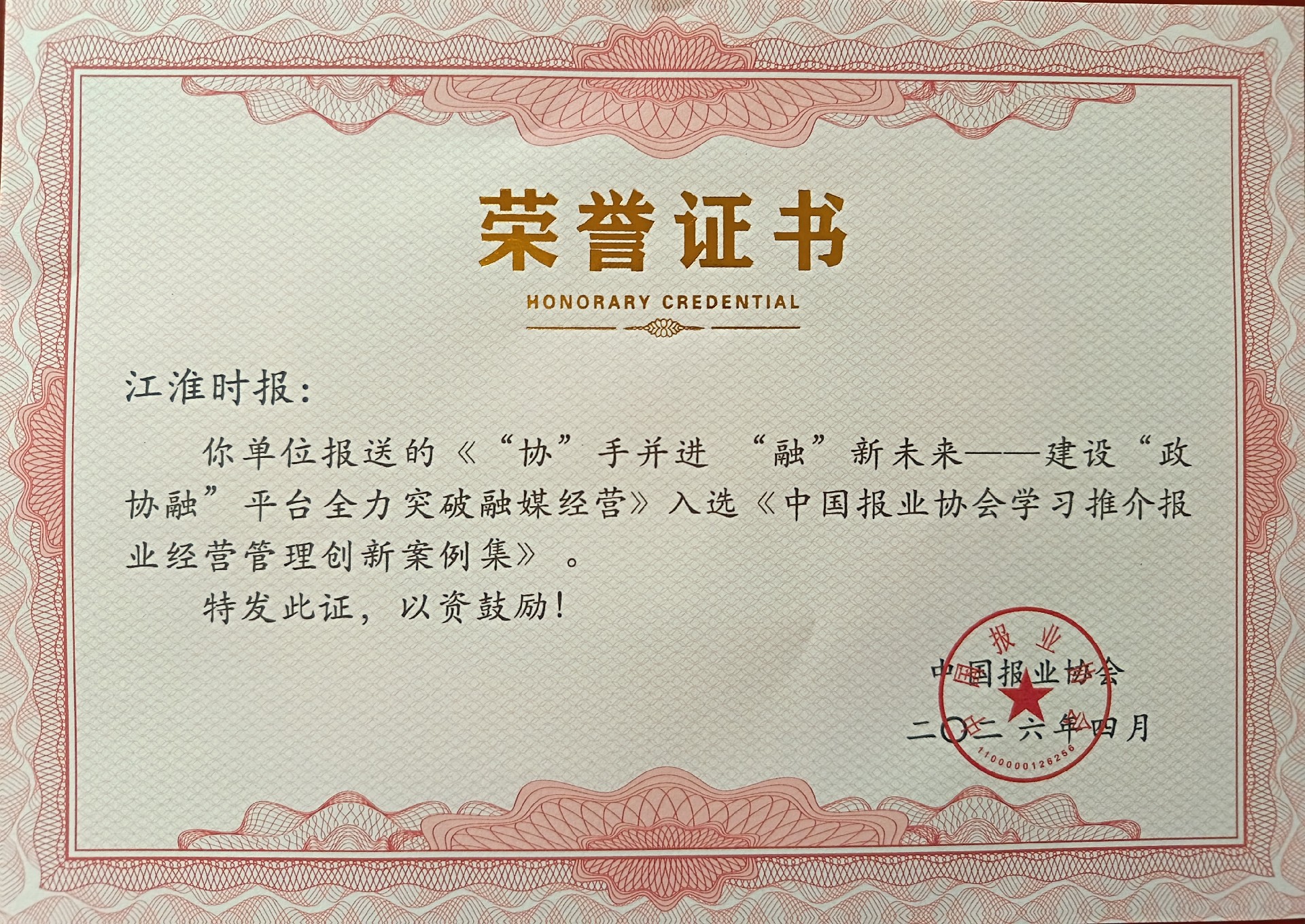 4月22日,中国报业经营管理大会在贵州省黔西南州兴义市召开。大会发布了中国报业协会学习推介报业经营管理创新案例,安徽日报报业集团的安徽党媒云农信融、“‘小叶医探’——聚焦‘新闻+政务服务商务’融合创新,构建区域性健康服务新生态”、“‘协’手并进 ‘融’新未来——建设‘政协融’平台全力突破融媒经营”入选,另有1件案例入选推介公益广告。