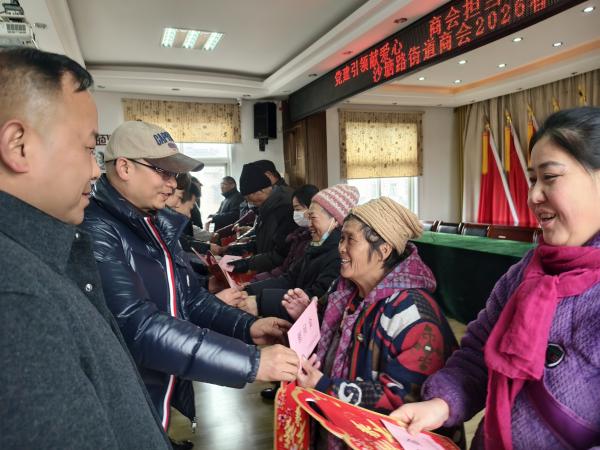新春将至,岁寒情暖。沙塘路街道商会秉持“致富思源、扶危济困”的理念,组织爱心企业家开展“党建引领献爱心 商会担当显真情”的捐款慰问活动,以实际行动践行社会责任,让寒冬暖意融融。 活动前夕,沙塘路街道商会通过与街道、社区联动,精准摸排辖区内的困难群众的实际情况,建立帮扶台账,确保慰问精准有效。活动倡议发出后,企业家们积极响应,踊跃捐款,彰显企业家的社会责任和担当。 2月3日下午,沙塘路街道商会2026春节送温暖活动在街道五楼会议室拉开帷幕,街道领导、商会代表和困难群众齐聚一堂,街道党工委书记邵祥同志为活动致辞,感谢商会始终与街道同心同德、同向同行,在推动区域经济发展、优化营商环境、参与社区治理、投身公益事业等方面,展现了新时代企业和企业家的担当与风采,为街道增添了更多的和谐与温情。商会代表们表示,饮水思源、反哺社会是企业家的担当;守望相助、扶危济困是商会的初心。受助群众纷纷表示,感谢街道和商会企业家的关心帮助,这份温暖让他们感受到社会大家庭的关爱,对未来的生活更加充满信心和希望。 集中活动后,商会企业家代表还主动上门看望困难群众,把新春祝福送到家中。