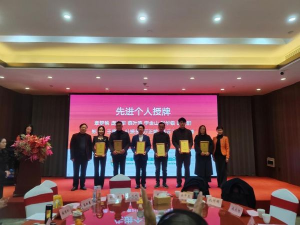 在激昂的乐曲声中,获奖的先进个人与先进集体代表依次上台接受荣誉。先进个人代表鑫通愿景控股集团有限公司人力行政总监—蔡叶鸣、先进集体代表安徽省综建勘察设计院有限公司董事长—姚启华两位代表分别发表了真挚感人的获奖感言,分享了他们在商会平台中成长、互助、共赢的故事与心得,展现了商会人的风采与担当,赢得了全场阵阵掌声。