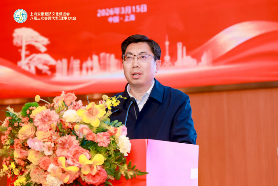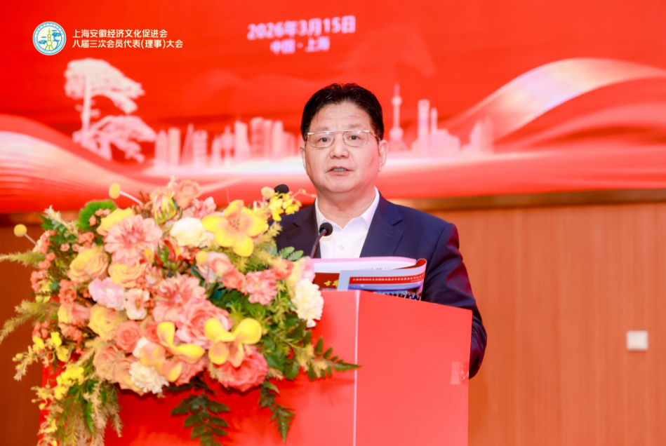 3月15日,上海安徽经济文化促进会顺利召开八届三次会员代表(理事)大会暨2026在沪皖籍各界人士新春联谊会。安徽省人大常委会原副主任、安徽(皖)籍专家学者实业家联谊会会长李明,安徽省工商联专职副主席(正厅级)聂磊,安徽省发改委党组成员、副主任张云,安徽省政府驻上海办事处党组成员、副主任邵明,上海安徽经济文化促进会党的工作领导小组组长刘涟清,会长王传霖等以及各兄弟商协会负责人、企业园区代表等共计500余人参加会议。