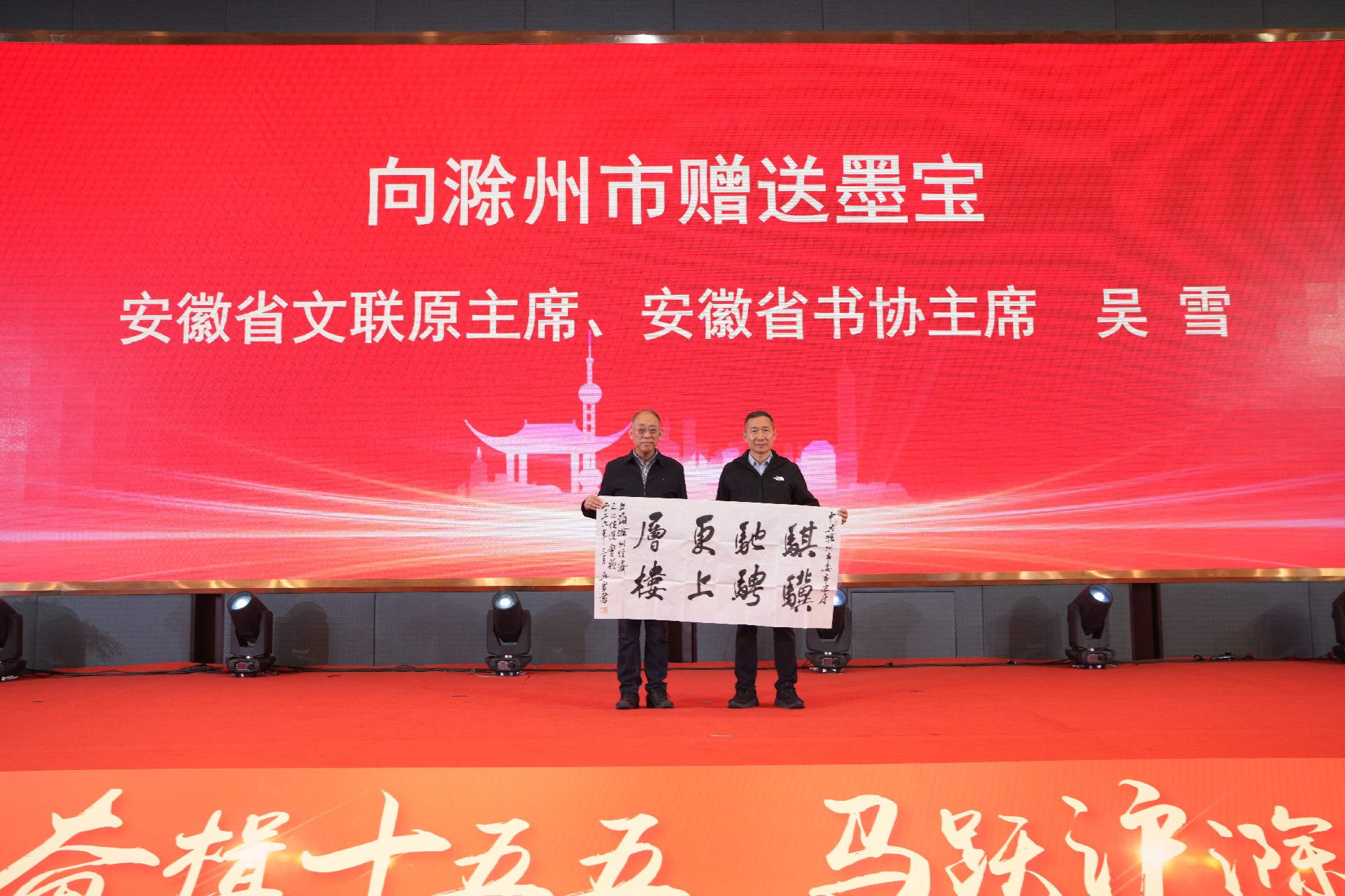 文化交流环节,安徽省文联原主席、省书协主席吴雪向滁州市赠送亲笔书法作品,笔墨寄乡情,雅韵增光彩,为大会增添了浓厚的文化底蕴。