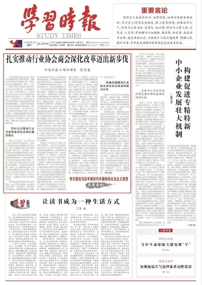 行业协会商会是实现有效市场和有为政府更好结合的桥梁纽带,是推进中国式现代化的重要力量,是党的社会工作的重要对象。党的二十大和二十届历次全会对行业协会商会党的建设和改革发展作出一系列重要部署。近期,中共中央办公厅、国务院办公厅印发《关于推动行业协会商会深化改革的意见》(以下简称《意见》),集中体现了以习近平同志为核心的党中央对行业协会商会的高度重视和殷切期待,为新时代新征程行业协会商会规范健康发展提供了顶层设计和行动指南。我们要坚持以习近平新时代中国特色社会主义思想为指导,全面准确把握推动行业协会商会深化改革的重要意义、重点任务和工作要求,坚决抓好《意见》贯彻落实,不断开创行业协会商会改革发展新局面。
