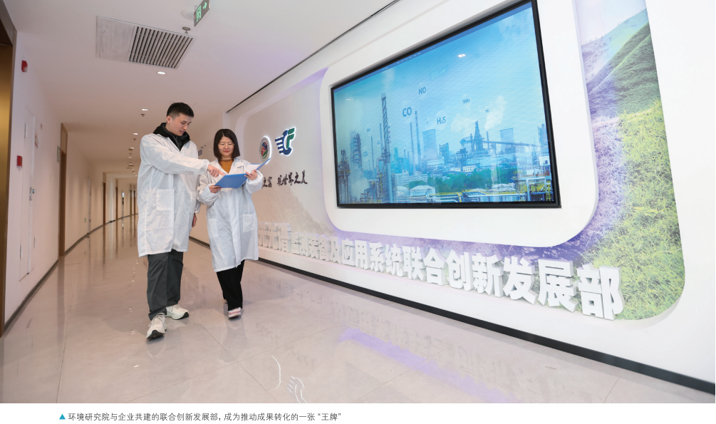 如果说科技创新实现了从0到1的突破,那么产业创新就是从1到N的复制和放大,这一步,并不比原始创新更容易。记者在环境研究院采访时发现,岑锋科技、合安智为、鑫和生物、中科智慧、伊尔思生态科技、拓水环境等企业都在醒目位置挂着“联合创新发展部”的牌子,正是通过这一创新的研发单元,研究院与企业深度绑定,进行“投入共担”等方面的机制性探索。