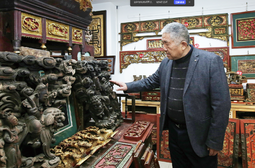 “雕必有工,工必有意”。收藏的是木头,传承的是文化。木雕古为文人雅士所钟爱,镶嵌于室内门窗、家具、摆件之上,装饰于建筑的梁托、斗拱、雀替之中,能让人于不经意间,看见规劝,看见祝福,看见祥瑞。如今,这些浸润千年文化的木雕已成了周传新生活的一部分。