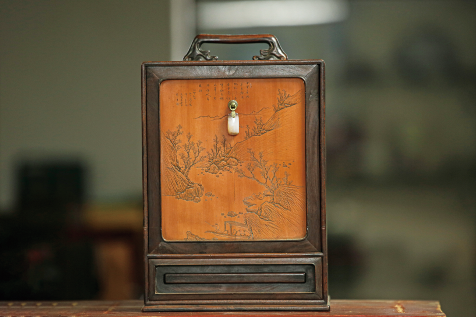 在他藏品丰富但略显杂乱的仓库中,一件黄杨木座屏格外引人注目,这是周传新最为得意的一件藏品。