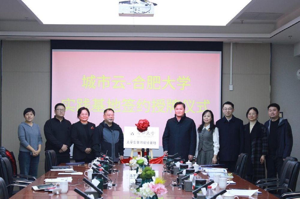 徽商传媒全球理事会终身常务理事单位——合肥城市云与合肥大学举行实践基地签约授牌仪式。合肥大学党委委员、副校长王晓峰,经济学院院长江玉荣、副院长郑飞鸿等共同参加揭牌仪式。