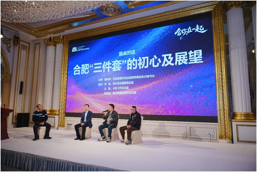 第二场对话以《“合肥三件套”的初心和发展》为主题,邀请老乡鸡、卡旺卡、詹记相关负责人阐述了各自品牌的创始理念、发展策略和发展规划。未来,“合肥三件套”将与购物中心、商业街区、文创园区携手共进,放大安徽自主品牌声量。