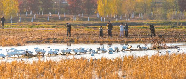 与杨浩然一样被天鹅吸引来的,还有许多家庭。上周末,金梦怡带着儿子来到湿地边,孩子听说这里来了上千只小天鹅后,便按捺不住兴奋。“大自然是最好的课堂。”金梦怡说,“让孩子亲眼看到这些优雅的鸟儿,比书本上的描述生动得多。”在湿地的不同角落,随处可见父母带着孩子,或举望远镜,或持相机,共同观察、记录着天鹅的一举一动。