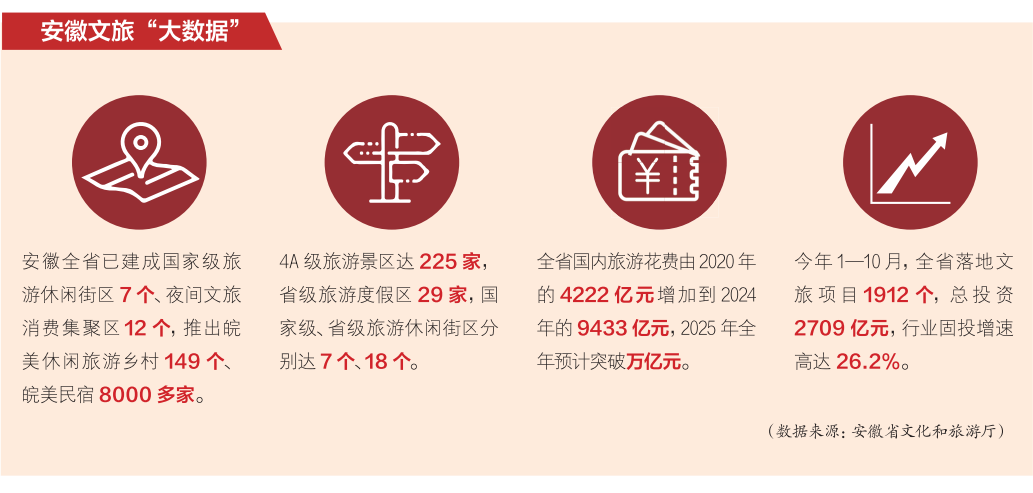 近年来,安徽将文旅产业纳入全省十大新兴产业,成立产业推进组工作专班,出台促进文旅产业平台载体项目创新发展、提振文化和旅游消费等系列政策措施,编制全省文旅产业发展白皮书、“双招双引”和产业培育工作方案,29个全域旅游示范区“一区一策”量身定制提升方案……这种系统性、生态化的治理思维,正不断提升行业应对市场变化、驾驭发展规律的能力。