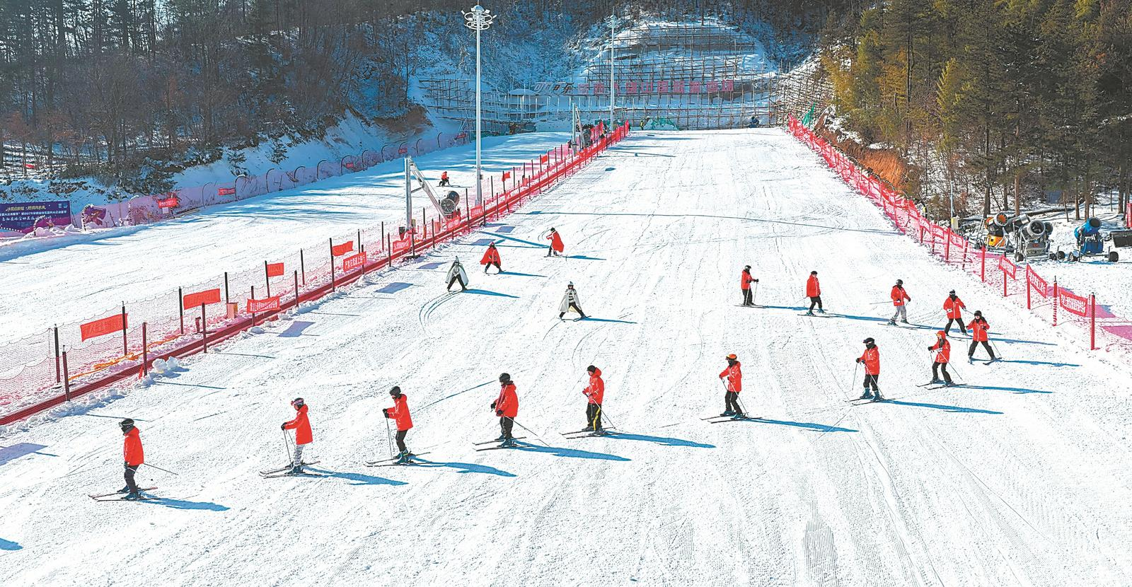 1月24日,冰雪运动爱好者和游客在岳西大别山国际滑雪场,开展滑雪、玩雪、赏雪和冰雪趣味运动会等活动,为冬日的大别山区注入了炽热活力。 通讯员 王先国 摄