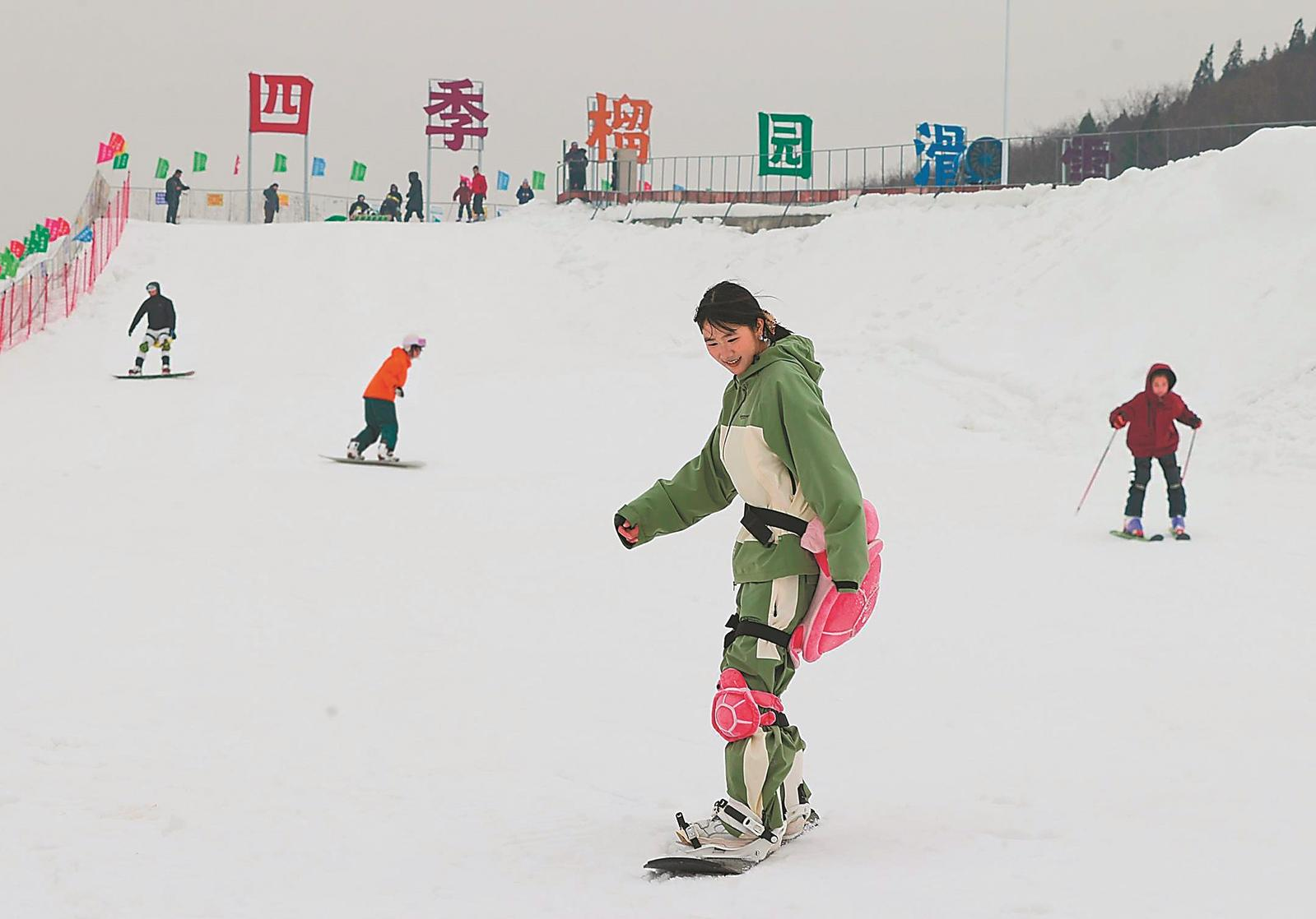 1月25日,游客在淮北市烈山区四季榴园滑雪场游玩,尽享冰雪运动带来的快乐。通讯员 冯树风 摄