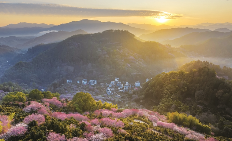2月9日,歙县雄村镇卖花渔村,漫山遍野的梅花次第绽放,如烟似霞,吸引了各地游客慕名而来。